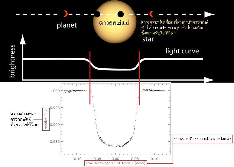 หากมีการเปลี่ยนค่าความสว่าง ก็แสดงว่าอาจมี ดาวเคราะห์เคลื่อนที่ผ่านหน้าครับ