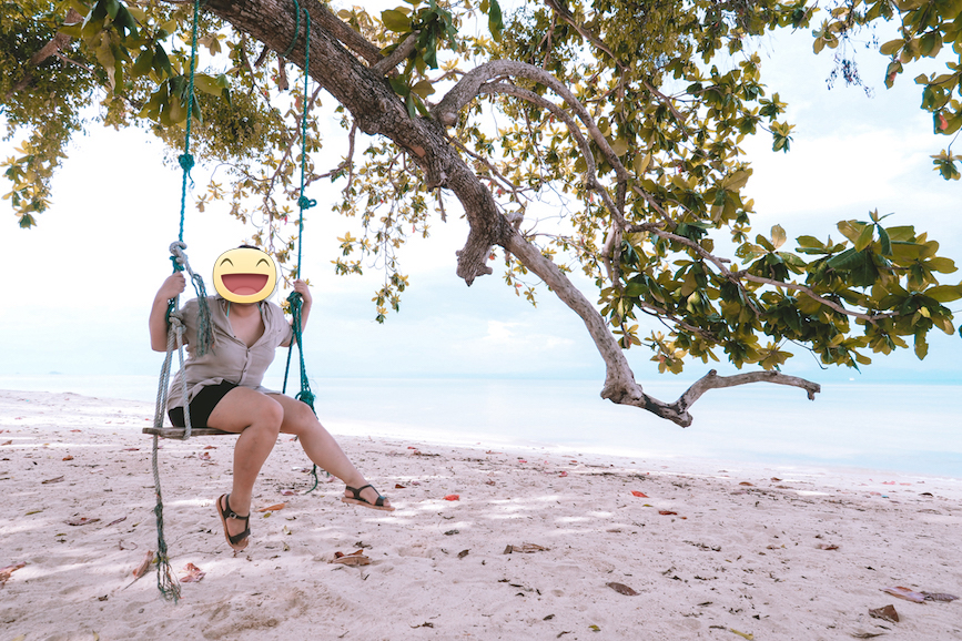 แล้วพี่คนขับรถก็มาส่งเราที่ชายหาดอีกด้านนึง ตรงนี้ก็จะมีชิงช้าและกิ่งไม้ใหญ่ กิ่งไม้แข็งแรงมากๆ ผมและเพื่อนพิสูจน์มาแล้ว 55555