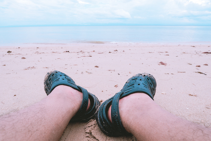 แต่ต้องใส่รองเท้า เพื่อป้องกันเหยียบเศษหินหรือเศษหอยมีคมครับ