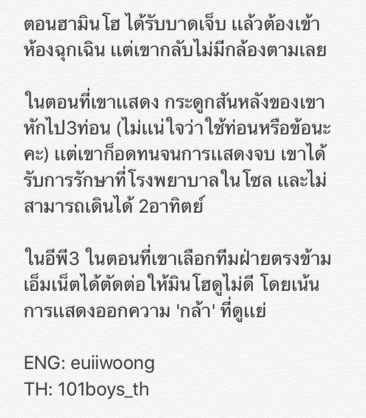 ** ** ยังง ว่ามันอยู่ช่วงไหนของep 3 ** อาจเพราะยังจำหน้าไม่ได้ว่า เอ็มเน็ตตัดต่อช่วงของฮามินโฮยังไงคะ น้องพูดว่ายังไง