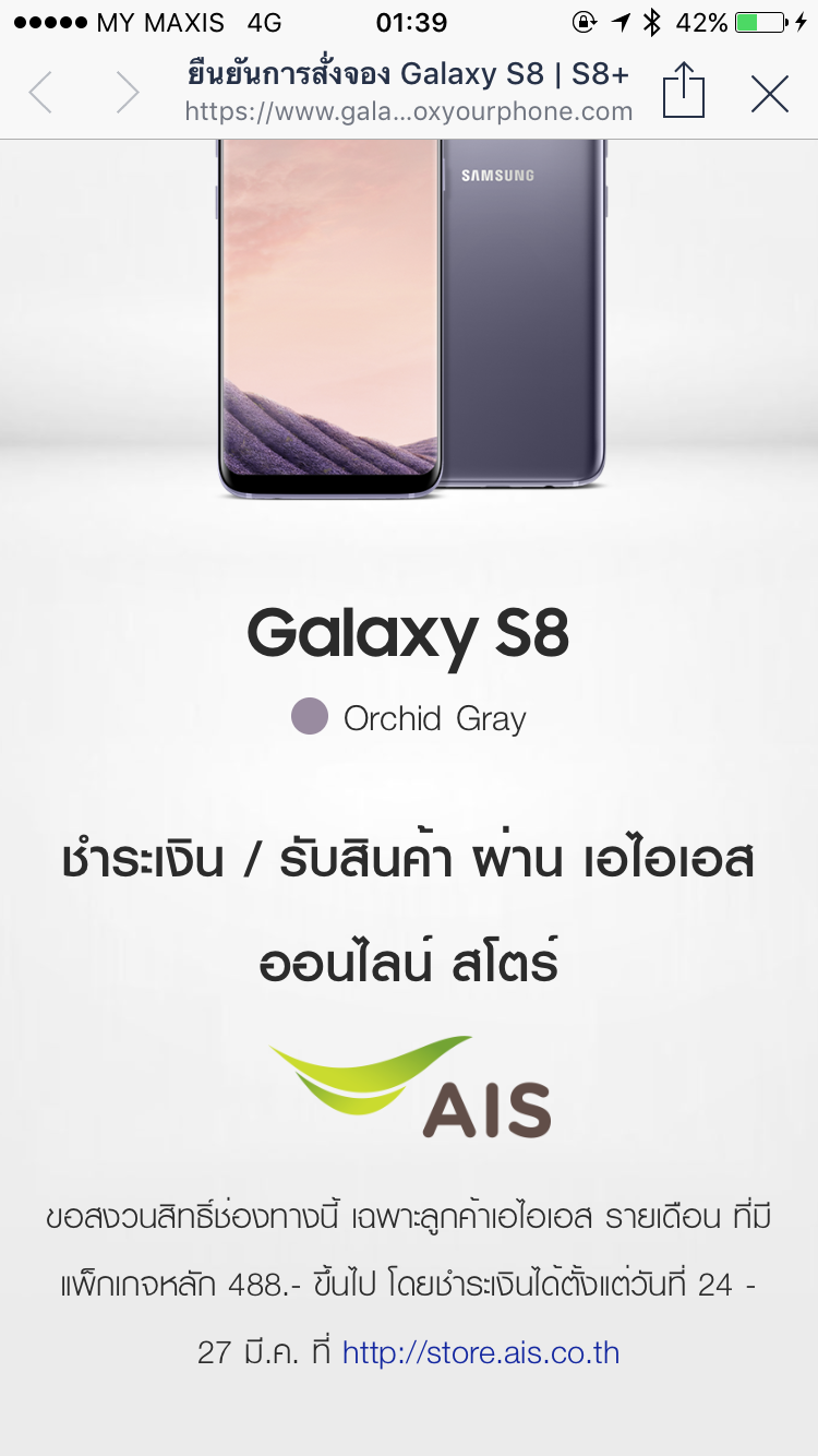Pre-Order Samsung galaxy S8 จาก AIS แล้ว เลือกจ่ายที่ เวบ Store.Ais.co.th