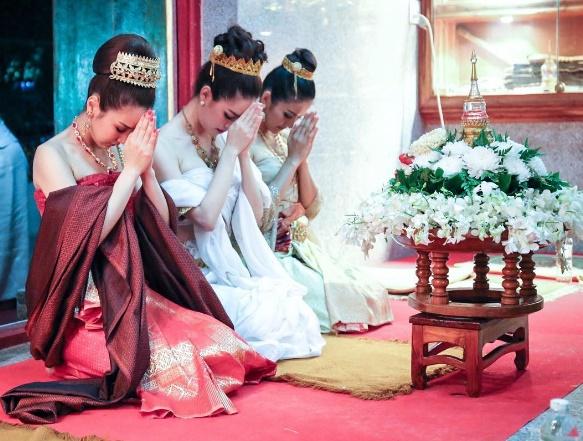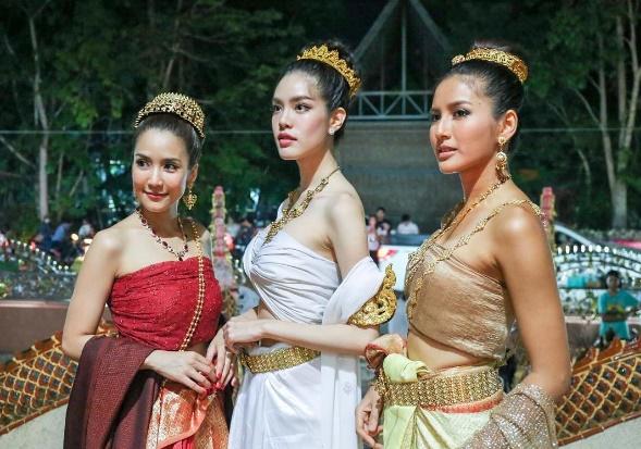 ไม่เท่านั้นยามค่ำคืน ทั้ง 3 สาวยังขอจัดเต็มให้เข้ากับสถานที่ เนรมิตความสวยเป็นเจ้าแม่นาคี ทำพิธีอัญเชิญพระบรมสารีริกธาตุมาประดิษฐาน วัดนิมิตโพธิญาณ สวยสง่าเพราะผลบุญที่สร้างสมมาจริงๆ