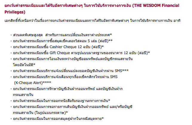 สิทธิประโยชน์ที่ได้จากบัตร THE WISDOM ของธนาคารกสิกรไทย ประจำปี 2560