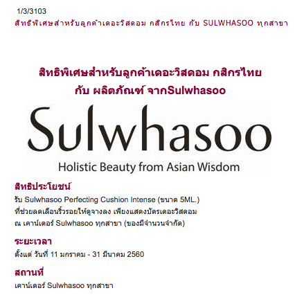 ได้ไปรับจริงๆที่สาขาของ Sulwhasoo สอบถามว่าของสมนาคุณของ The wisdom หมดรึยัง