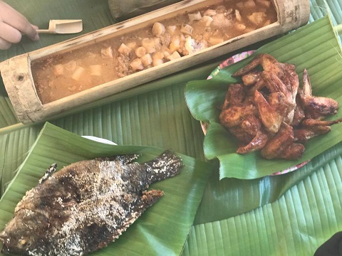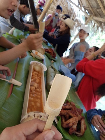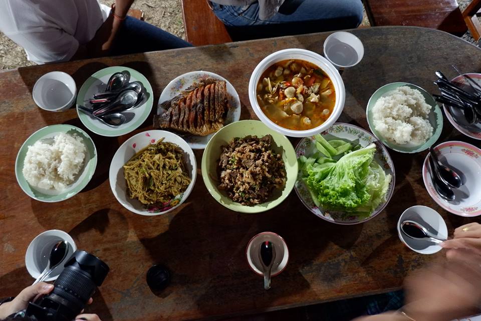 อาหารก็จะเป็นอาหารแบบพื้นบ้านจะมี ซุปหน่อไม้ ทอดปลา ต้มยำ ลาบหมู ผักของที่นี่ก็จะหวาน กรอบมากๆเลยยยยยยยยยยระหว่างที่รับประทานอาหารก็จะมีน้องๆที่อยู่ในหมู่บ้านมาทำกิจกรรมให้เราดูคือการรำ ** เป็นการรำที่น่ารักแบบ *ตะมุตะมิ