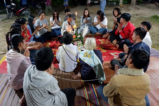 เวลา 16:30 เล่นน้ำเสร็จเพวกเราก็กลับโฮมสเตย์ ไปเก็บของอาบน้ำ และเข้าพิธีบายศรีสู่ขวัญในตอนเย็น ที่พักก็จะมีทั้งที่เป็นห้องนอน แล้วก็เต๊นให้แล้วแต่ละเลือกตามต้องการได้เลยจ้า