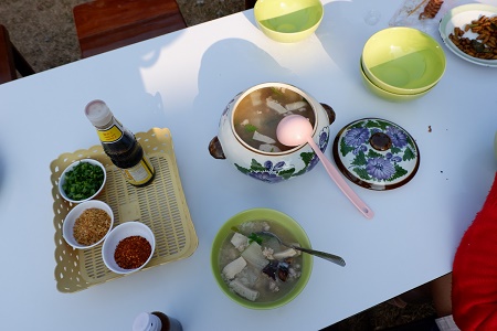 หลังจากนั้นเราก็กลับมาที่โฮมสเตย์และทานอาหารเช้าแบบเบาๆกับข้าวต้มทรงเครื่อง