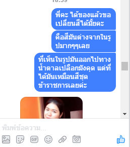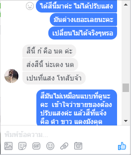 แต่พอได้ของแล้วสีมันเพี้ยนไปเยอะจึงสอบถามแม่ค้าเรื่องการขอเปลี่ยน