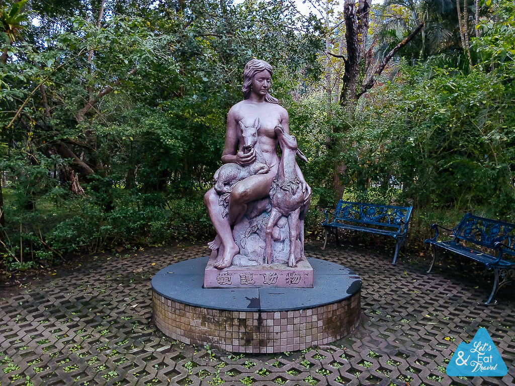 สวนหย่อมก่อนถึงสถานีกระเช้าเมาคงมีรูปปั้น มีจุดถ่ายรูปป้ายสวนสัตว์ไทเป U-bike มีอยู่ทุกที่นักท่องเที่ยวอย่างเราสามารถลงทะเบียนแล้วจ่ายค่าเช่าด้วย อีซี่ การ์ดได้ แต่ครั้งนี้ไม่ได้ปั่นเพราะเจอฝนเกือบตลอดทริป
