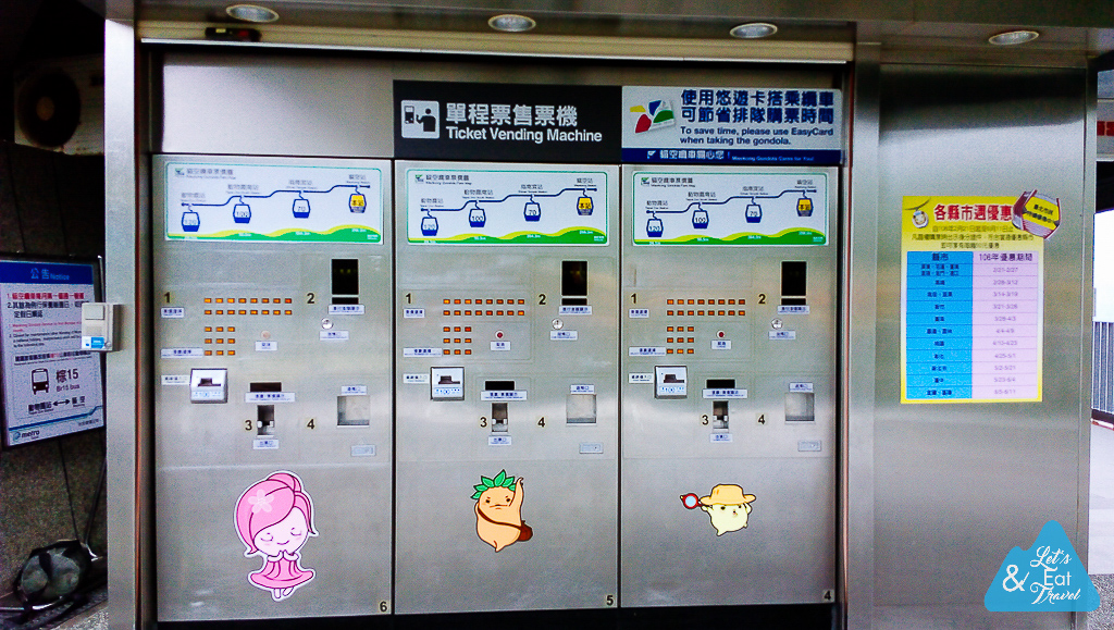 ในสถานีกระเช้ามีร้านขายของที่ระลึกเกี่ยวกับชาและไอศครีมรสชาขายด้วย ใครไม่มี อีซี่ การ์ด หยอดเงินที่ตู้อัตโนมัติซื้อตั๋วได้เลยจะลงสถานีไหนก็จ่ายเฉพาะจุดที่เราจะลง มีที่เที่ยวอยู่สามจุด 1. สถานีสวนสัตว์ ไทเป (Taipei Zoo South Station) 2. สถานีวัดซีหนาน (Zhinan Temple station) 3. สถานีเมาคง (Maokong Station) ราคาก็ต่างกันไปถ้าใช้ตู้ขายตั๋วไม่เป็น สามารถซื้อกับเจ้าหน้าที่ในช่องขายตั๋วได้