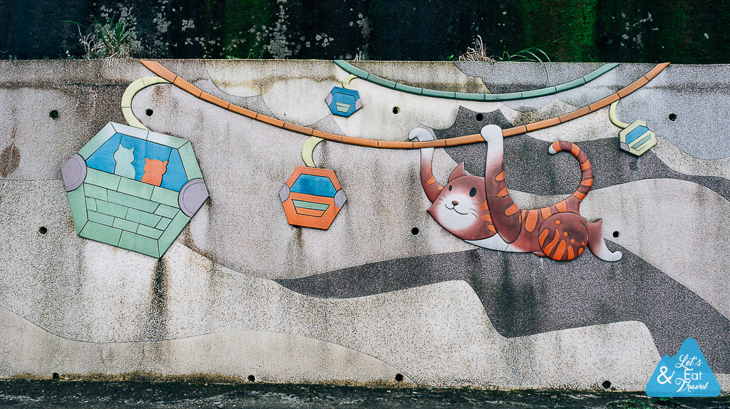 มีแมวไปทุกที่ ภาพปูนปั้นน่ารักบนกำแพง ในภาพด้านล่างไม่รู้คือเตาเผาอะไรสักอย่างในสมัยก่อน