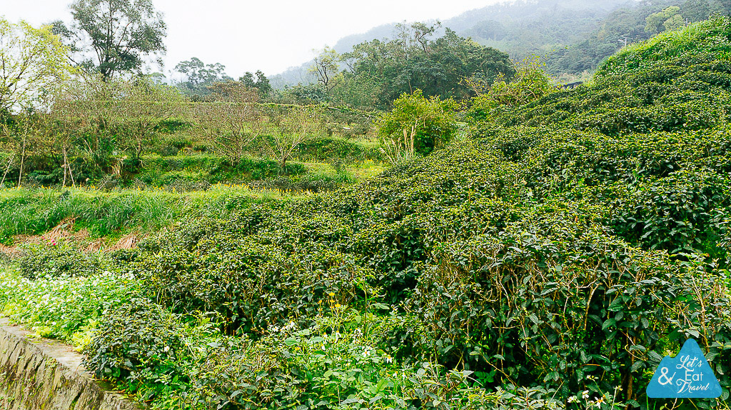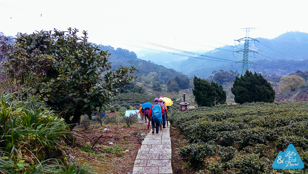 ทางเดินตามไร่ชา ทำดีมีการปูพื้นหินอย่างดี เจอคุณลุง คุณป้าชาวไต้หวันสูงอายุมาเดินออกกำลังกายกันด้วยแข็งแรงจริงๆ ไร่ชาจะปลูกันตามไหล่เขาเหมือนไร่ชาทางเหนือบ้านเรา แต่ที่ไต้หวันเป็นต้นกำเนิดชาอู่หลงและทิกวนอิม ที่นักดื่มชาทั้งหลายยกนิ้วให้ในเรื่องคุณภาพของชา ปลูกกันมานานหลายร้อยปี