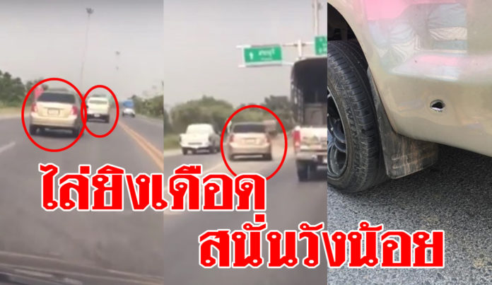 โลกออนไลน์ได้มีการแชร์คลิปวีดีโอสุดระทึก ถึงเหตุการณ์ไล่ยิงกันบนท้องถนน โดยระบุว่า เป็นเหตุการณ์ที่เกิดขึ้นเมื่อวันที่ 24 เม.ย. ที่ผ่านมา บริเวณ ถ.โรจนะ-วังน้อย กรณีที่รถกระบะโตโยต้าวีโก้ ได้ยูเทิร์นตัดหน้ารถเก๋งเฟชโรเล็ต ทำให้รถเก๋งคันดังกล่าวไม่พอใจ ขับรถไล่ขณะเดียวกันในคลิปวีดีโอยังได้ยิงเสียงปืนดังขึ้น ก่อนที่รถเก๋งจะเลี้ยวไปทางแยกมุ่งหน้าไปสระบุรี พอในช่วงท้ายคลิปจะเห็นว่ารถกระบะคันดังกล่าวมีรอยเป็นรูลักษณะเหมือนถูกกระสุนปืนยิง