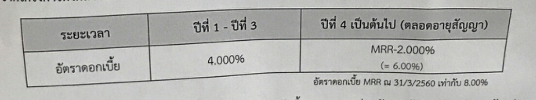 ปกติกู้สินเชื่อเพื่อที่อยู่อาศัย กับธนาคากรุงศรี วงเงินกู้ 2 ลบ 25 ปี อัตราดอกเบี้ยต่อปี MLR ลบด้วยร้อยละ 1.65 ต่อปี (ปัจจุบัน MLR เท่ากับร้อยละ ......) ผ่อนต่อเดือน 13700 บาท และเราดูในสัญญาของกรุงศร
