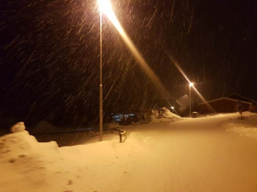 แล้วพอได้เวลาอีกรอบ ใกล้ๆเกือบเที่ยงคืนเราก็ออกเดินเข้าไปในส่วนของ abisko national park เดินฝ่าพายุหิมะที่กำลังตกแรงไปเรื่อยๆ เพื่อนที่ guesthouse เค้าบอกว่า เค้า cancel group ที่จองไว้ ตอนกลับมาได้คุยกัน ส่วนเราก็เดินฝ่าไปเรื่อยประมาณ เกือบสี่กิโลได้ จนหิมะตกหนักมากกกก เริ่มทนไม่ได้ คิดในใจ " เลิก ... แสงหนงแสงเหนือ ไม่ดู