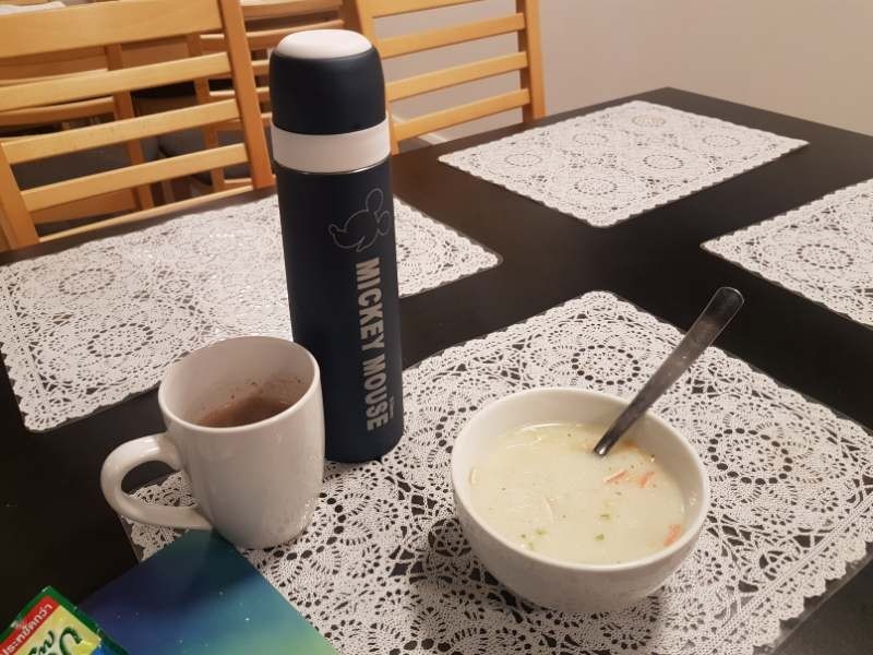 ทำให้เราต้องมานั่งกินข้าวรอไปก่อน ซึ่งห้องอาหารที่นี่ก็กว้างขวางใช้ได้ ทานข้าวที่แพคมาเอง คนอร์คัพโจ๊กบ้านเราค่า^^ ประหยัดไปอีก