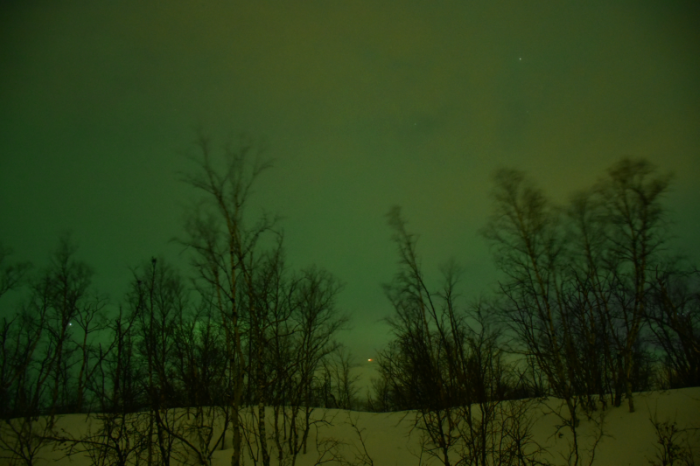 โอ้วแม่เจ้า...การมองเห็นแสงเหนือด้วยตาเปล่า มันเป็นแบบนี้นี่เอง แล้วเห็นที่ไหนคะรู้มั้ยยย!!! เหนือเมือง abisko ที่เราดั้นด้นเดินจากมาเพื่อที่จะไป abisko national park แทน หึหึ คิดในใจ ดีแล้ว!! มาวันแรกก็ได้เจอไง ^^