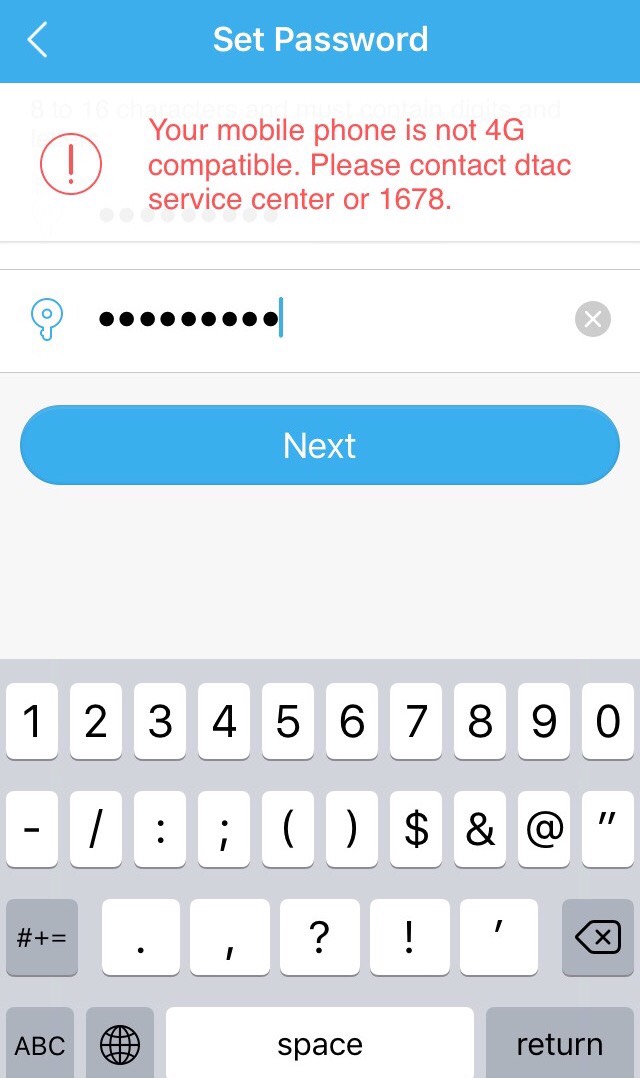 คือเพื่อนมาให้ลง App Dtac Wifi calling ให้ครับ ก่อนหน้าผมลงที่เครื่องผมไม่มีปัญหาอะไรลงและใช้งานได้เครื่องผมเป็น iphone6s พอมาลงเครื่องของเพื่อนใช้ iPhone5s Register ไม่ผ่านครับ ระบบแจ้งว่าเบอร์ไม่ได้อยู่ในระบบ 4G เพื่อนก็บอกว่าเบอร์เปลี่ยนซิมใหม่แล้วที่ Dtac Shop เมื่อต้นปี โทรไปแจ้ง 1678 เจ้าหน้าที่บอกว่าจะเปิดระบบ 4G ให้ตอนนี้ระบบกำลังอยู่ระหว่างทำการ (นานเนอะจากเปลี่ยนซิมต้นปีนี่จะกลางปีแล้วครับ) ก็ยังไม่มีอะไรคืบหน้าเพื่อนเจ้าของเบอร์ก็ไปติดต่อที่ Dtac Shop เจ้าหน้าที่ที่ Shop บอกว่าให้รอ SMS ยืนยันได้เลยไม่เกิน 3 วัน นี่ก็รอมาเป็นจะอาทิตย์นึงแล้วครับ ไม่ทราบว่าระบบจะให้ใช้มั้ยครับ Dtac Wifi Calling