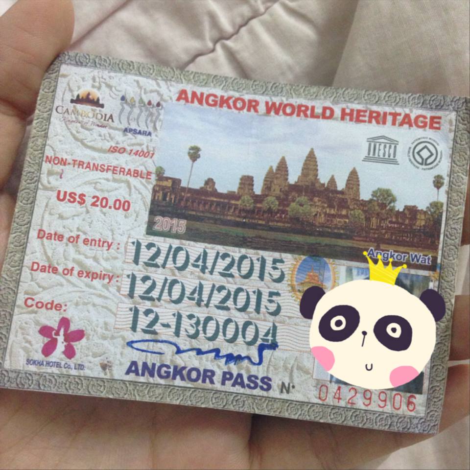 ค่าเข้า Angkor pass 1day 20 $ ถ่ายรูปติดบัตรสวยๆ แล้วรักษาไว้ให้ดีต้องใช้เป็นบัตรผ่านอีกหลายๆสถานที่ที่เข้าชม
