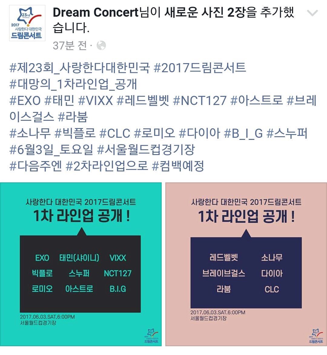 K-POP รายชื่อวงที่เข้าร่วม 2017 Dream Concert