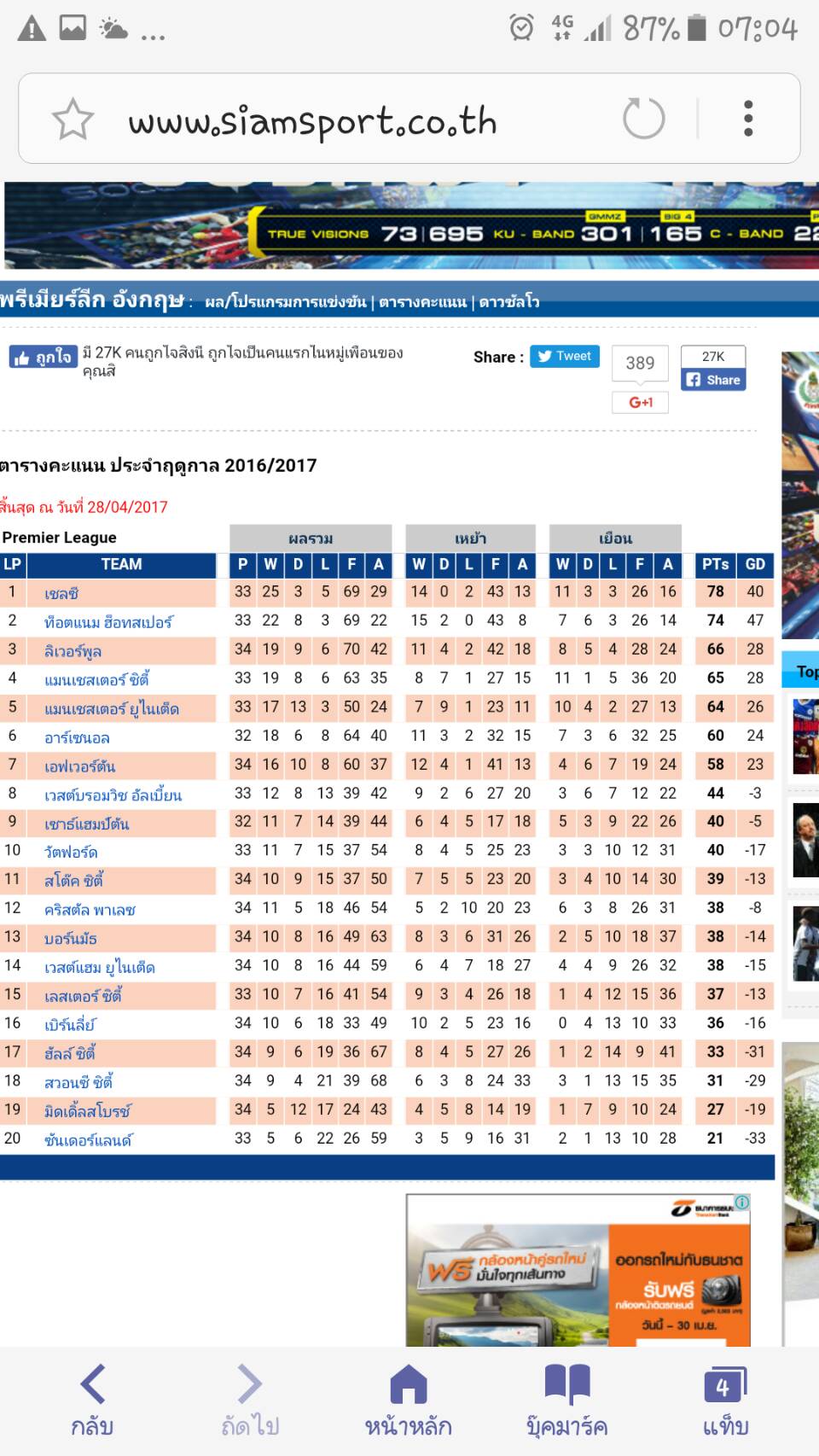 แต่พอหันไปดูตารางคะแนน ทำไมบอกแข่งเท่ากัน 33 นัด