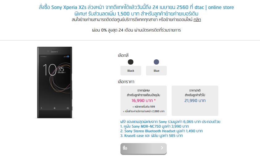ถาม Dtac สำหรับ Spec Xperia XZs สั่งล่วงหน้า?