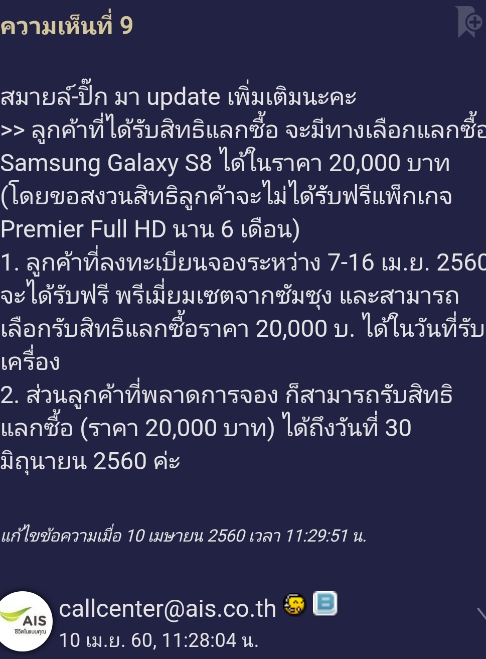 AIS ลูกค้าโครงการ S7 Exclusive Deal แลก Samsung S8 ไม่ได้ของ พรีเมื่ยม