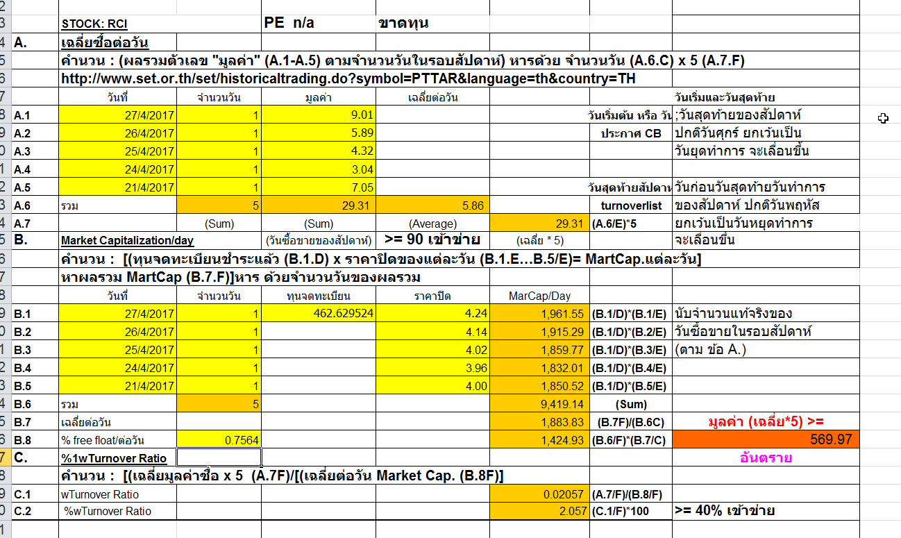 หลังปิดตลาดวันนี้ 28/4/256 ตลทประกาศให้ rci โดน Cash จากข้อมูลซื้อขาย 21/4-28/4 ดังนี้