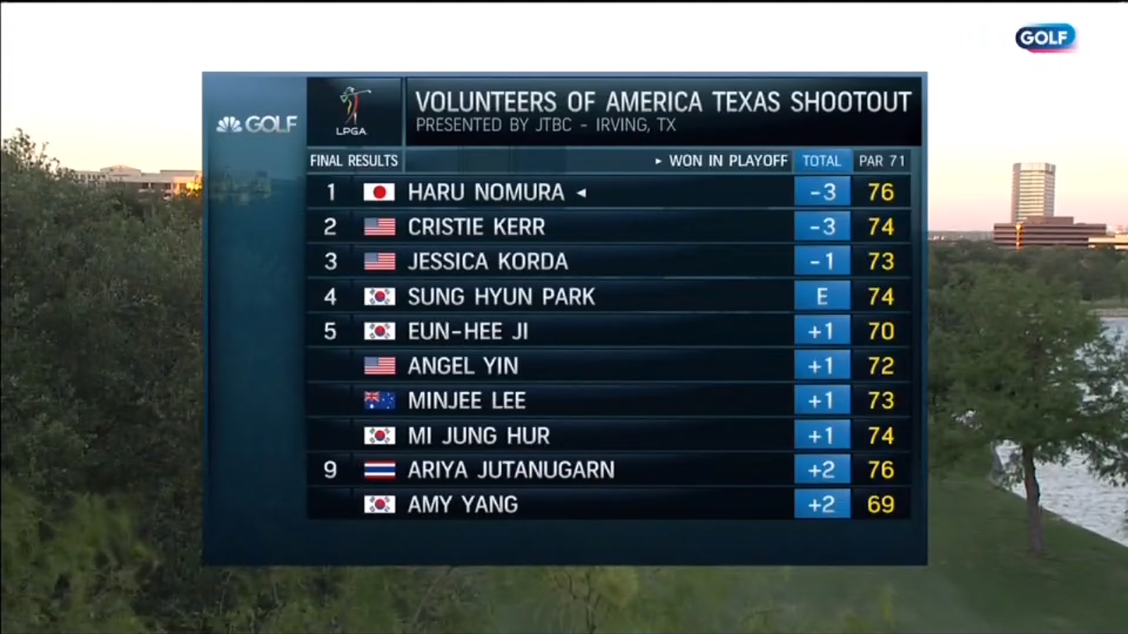 เพิ่งจบไปเดี๋ยวนี้เอง มีการเพลย์ออฟ ถึง 3 หลุม (เพิ่งตื่นมาดูพอดี หวังว่าดูไม่ผิด)