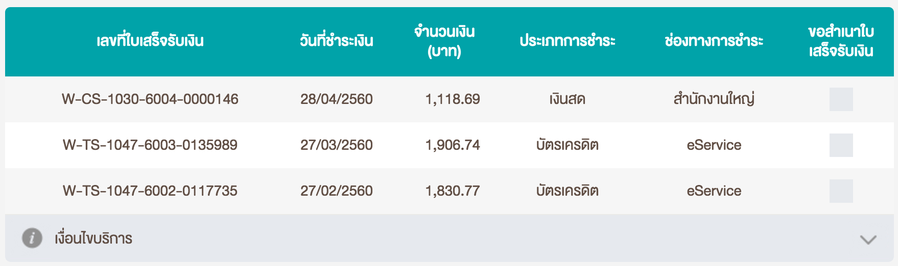 แต่พอถึงวันนี้ผมเข้าไปเช็คที่ esevice ผมพบว่าในรายการประวัติการชำระเงิน มีรายการชำระเงินขึ้นมาเพียงแค่รายการเดียว และเป็นยอด 1118.69 แต่ยอด 1866.62 กลับไม่มีแสดง