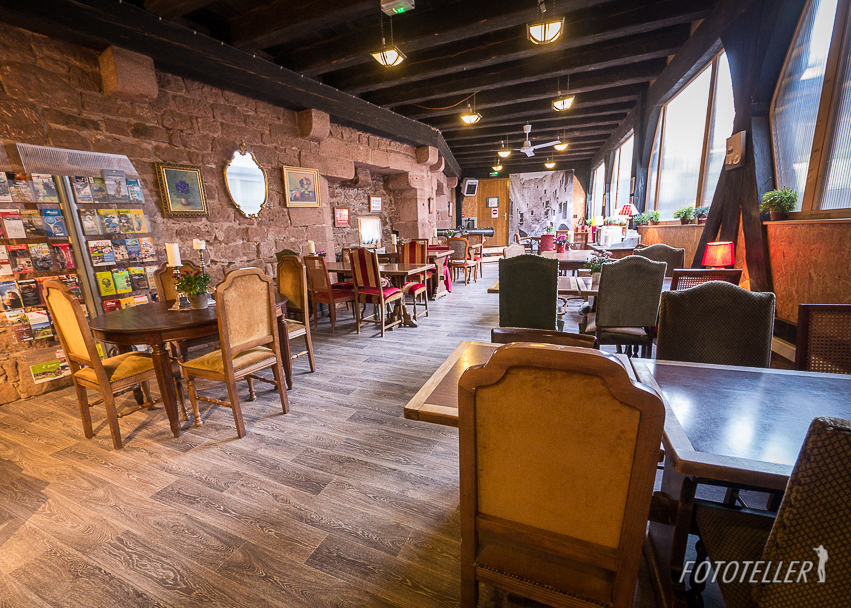 ขับขึ้นเขาไปไม่นานก็ถึงปราสาทใหญ่ (10.00 น.) ต้องเดินขึ้นไปอีกระยะหนึ่ง ระหว่างที่เดินก็ถ่ายรูปจนเพลินเดินเลยทางเข้าปราสาท ไปโผล่ที่ห้องสมุดซึ่งเป็นทั้งร้านขายของฝากและร้านกาแฟ ซึ่งไหนๆ เข้ามาแล้วก็เลยสั่งกาแฟกับเค็กมากินกัน