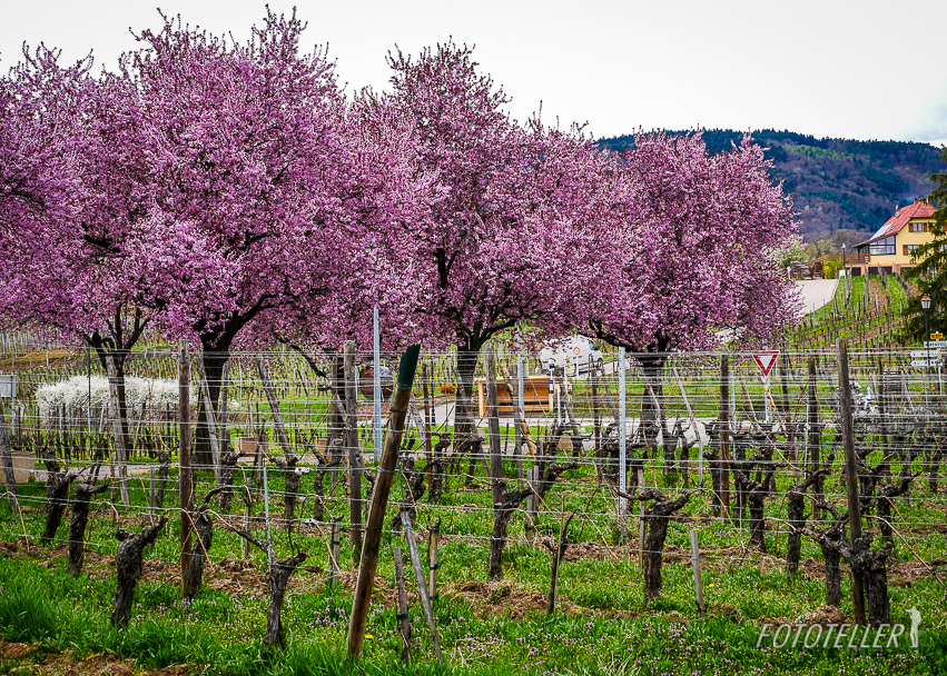 สองข้างทางเต็มไปด้วยไร่องุ่น เสียดายที่เห็นแต่ตอเป็นเพราะเพิ่งผ่านฤดูหนาวมา เชื่อว่าอีกไม่นานก็คงจะแตกกิ่งก้านสาขาผลิดอกออกผลมาให้ดูกัน ซึ่งคงจะเป็นภาพที่แตกต่างจากภาพที่ถ่ายมาให้ดูนี้ (สงสัยต้องมาอีกทีตอนที่มีผลองุ่นออกมา)