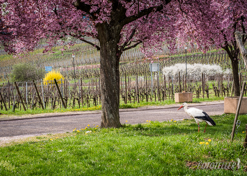 ขับออกนอก Ribeauville มาได้ไม่นานก็เจอต้นไม้ออกดอกสีชมพูสวยงามมาก หยุดรถลงมาถ่ายรูป แล้วก็พบกับของแถมซึ่งก็คือนกตัวใหญ่อย่างที่เห็นบนยอดโบส์ถ แต่คราวนี้มาเดินอยู่ใกล้ๆ