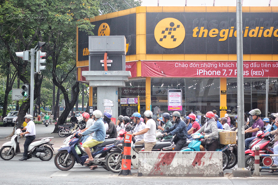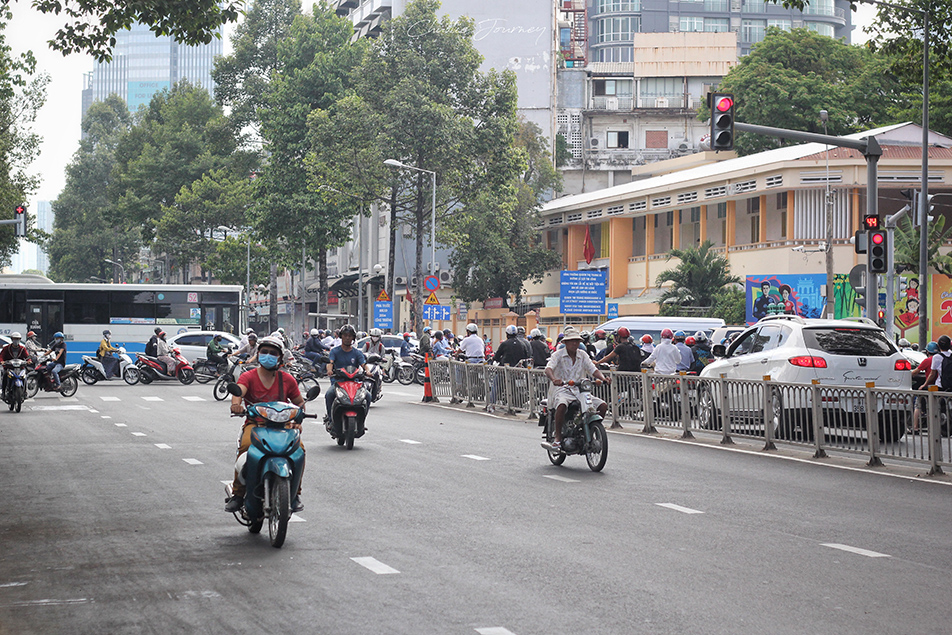 ระหว่างทางทำให้เราได้เจอ ได้เห็น ได้สัมผัสกับการจลาจล เอ้ย การจราจร ได้ใกล้ชิดขึ้น รถเคี่ยง(มอเตอร์ไซค์)เยอะมาก และขี่กันแบบหมาเห็นแล้วไม่คิดข้ามถนนเด็ดขาด เยอะสมกับเป็นเมืองแห่งมอเตอร์ไซค์จริงๆ อีกอย่างที่รู้สึกได้คือ แตรรถมันมีมาเพื่อประเทศเวียดนามโดยแท้ น่าจะเป็นชาติเดียวที่คนซื้อรถมาแล้วใช้แตรได้คุ้มที่สุดในโลกแหละ รวมๆ แล้วสภาพถนนของเมืองนี้ จะให้คำนิยามว่า 'จลาจล จราจร' ก็ไม่เกินไปกับความเป็นจริง