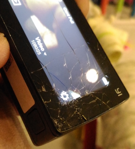 ด้วยความไม่ระวังทำให้ yi4k ตกพื้น ปัง จอแตกละเอียด ไม่สามารถ touch screen ได้ แต่ยังเปิดกล้องและอัดได้จากปุ่มข้างบน