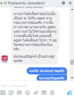 - ยังไม่ได้เครื่องจึง ส่งเมล ตามเป็นระยะๆ ทั้ง goosetech และ yi support --- เริ่มหงุดหงิด เพราะ 2 เดือนแล้ว