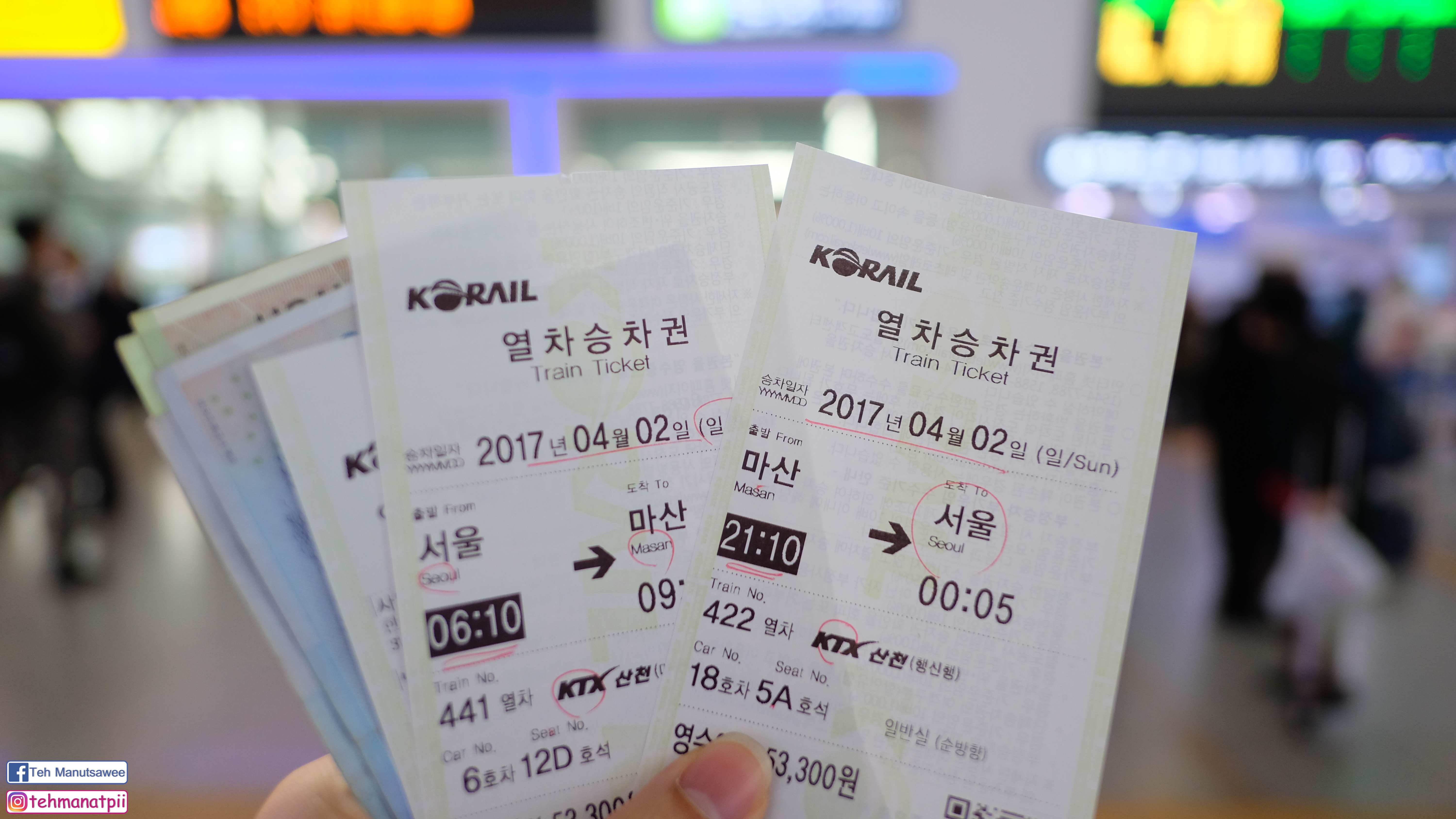 พอมาถึงสถานีโซล ก็เดินตรงไปที่เค้าเตอร์ซื้อตั๋วทันที การเตรียมตัวซื้อตั๋วคือ ง่ายและสะดวกมากๆ เข้าเน็ตแล้วดูตารางรถไฟก่อน จดหมายเลขเที่ยว เวลา วันที่ สถานีปลายทางมา แล้วยื่นให้กับพนักงานขายตั๋วเลย แล้วจ่ายเงิน เสร็จเรียบร้อย อย่าลืมขอที่นั่งติดหน้าต่างด้วยนะ จะได้ดูวิวสวยๆฟินๆ เพราะถ้าไม่บอกแล้วได้นั่งไกลหน้าต่าง จะมาวอแวเค้าไม่ได้นะ 55