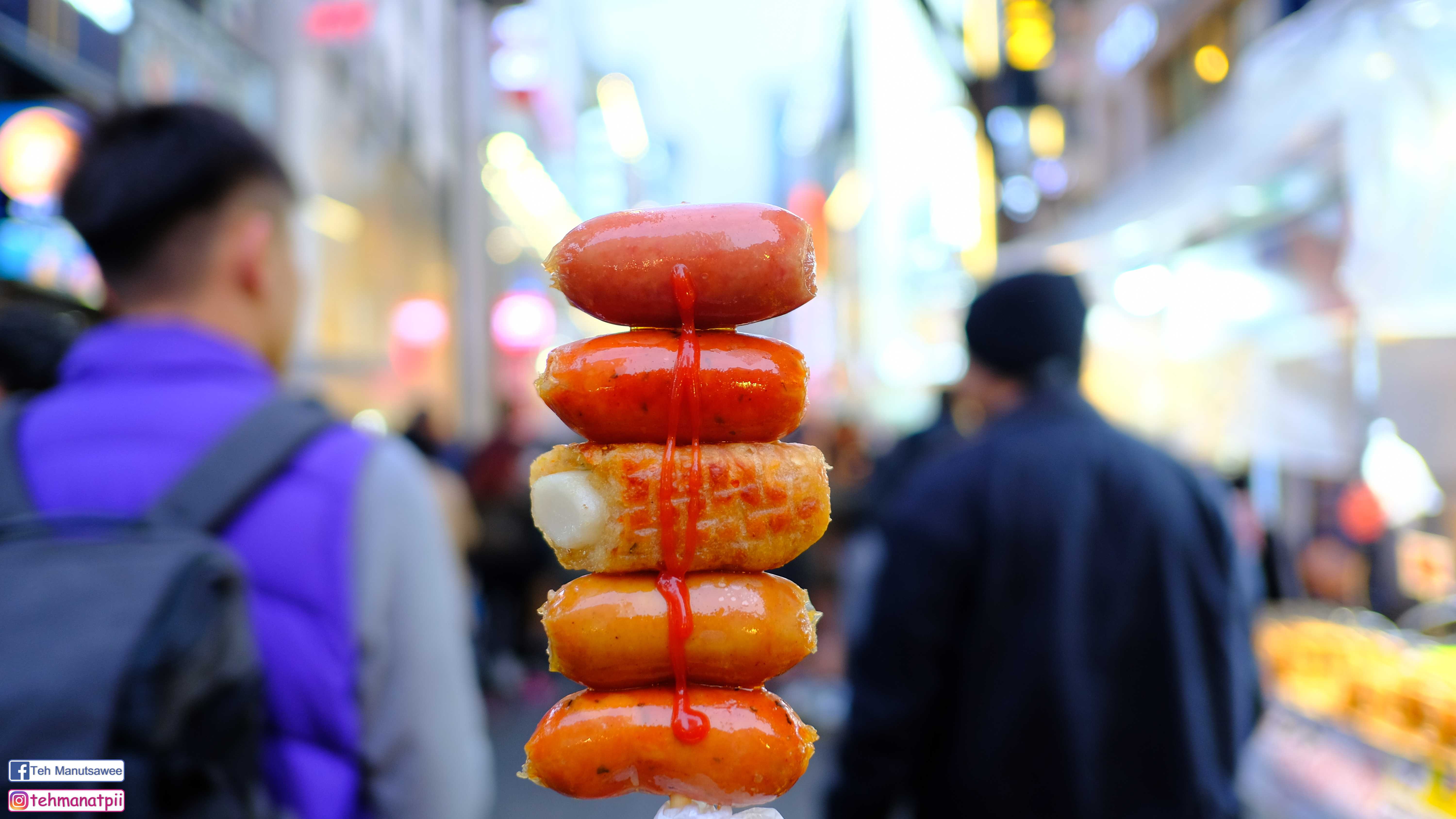 ตอนเดินหาซื้อของกิน ที่เห็นๆก็มีแต่อันที่น่ากินมากๆ แต่ไม่รู้ว่าจะกินอันไหนดี สุดท้ายมาตกม้าตายกับลูกชิ้นไส้กรอกง่ายๆ แต่อร่อยสุดๆ ได้มา 5 ลูก ฟาดเรียบในเวลาอันสั้น เออ สงสัยหิวจัดจริงๆ พอกินเสร็จมีแรงแล้วก็ต้องทำอะไรคับ? ออกเที่ยวต่อสิคับ ตกค่ำๆ 4 ทุ่ม ออกเที่ยวออกไปสัมผัสไนท์คลับของเกาหลีดู เดินไปจากที่พักไม่ไกล สะดวกสุดๆ ไปกันเลย