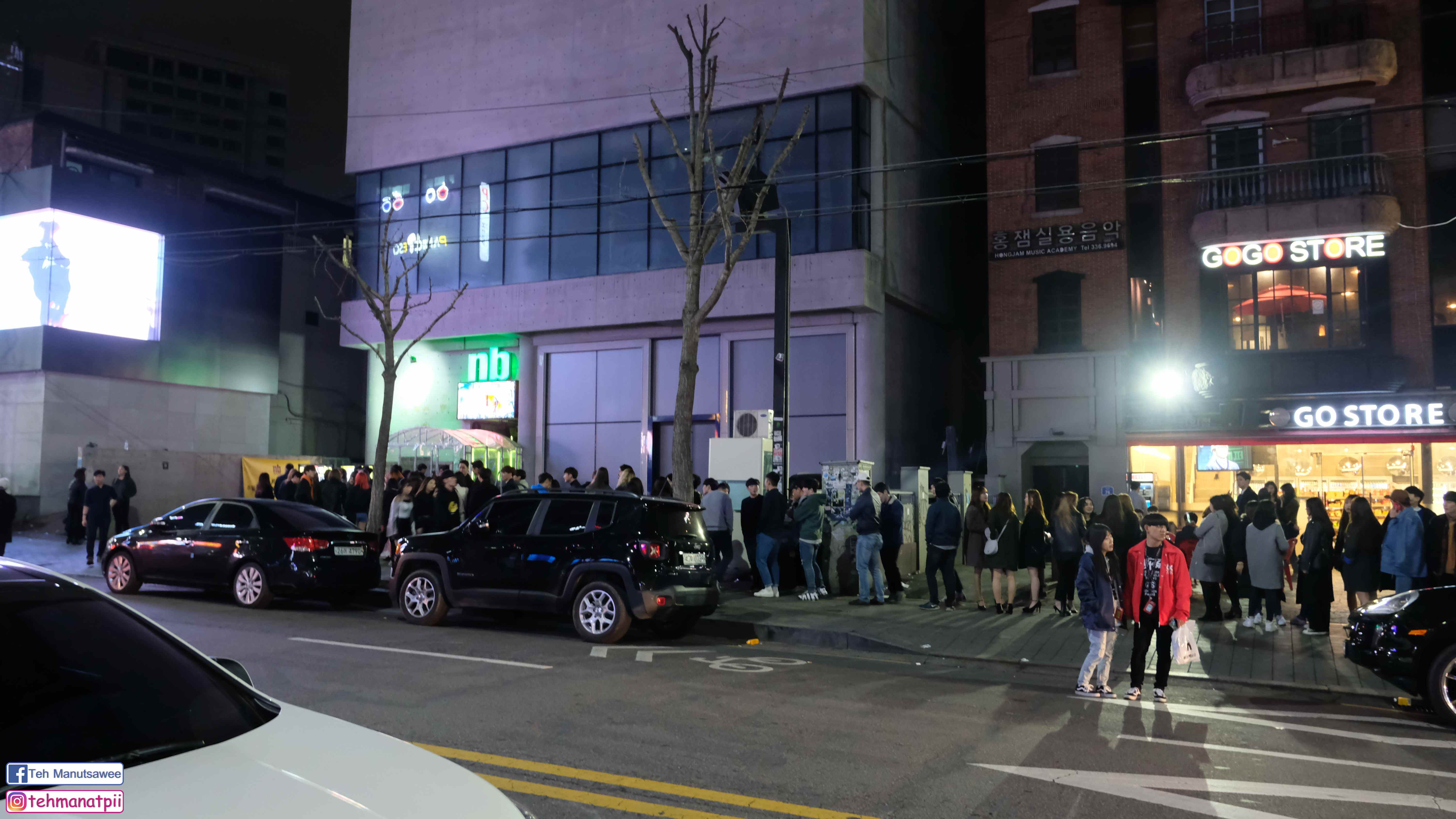 เนื่องจากเป็นวันศุกร์ ไม่อยากจะพูด เกิดมาเพิ่งเคยเห็นคนเข้าคิวเที่ยวผับยาวขนาดนี้ ยาวเป็นหลายร้อยเมตร แอบอึ้งนิดนึง มันวันศุกร์ด้วยล่ะ ขอบอกก่อนเลยว่าเป็นคนไม่ดื่ม ไม่ชอบเที่ยวกลางคืนแนวนี้ แต่มาทั้งทีพลีชีพ ยอมลองเรียนรู้สิ่งใหม่ๆ สัมผัสสิ่งใหม่ๆ ที่เค้าว่าสนุกนักหนา เราเข้าไปได้ไม่ถึงชั่วโมง ออกมาทันที กลับบ้านดีกว่า ฟีลลิ่งมันอึดอัน เสียงดัง เวียนหัว กลิ่นบุหรี่ บลาๆ แต่สิ่งดีๆที่สังเกตได้ก็มีคับ ผู้ชายเกาหลีเต้นหนักมาก ใส่ไม่ยั้ง ไม่มีการแอ๊บแบ๊วดิ้นเบาๆ มันใส่สุดแรง ยอมเค้าจริงๆ คนที่ชอบเต้นหน้าเวทีหมอลำซิ่งนี่ยังชิดซ้ายบอกเลย