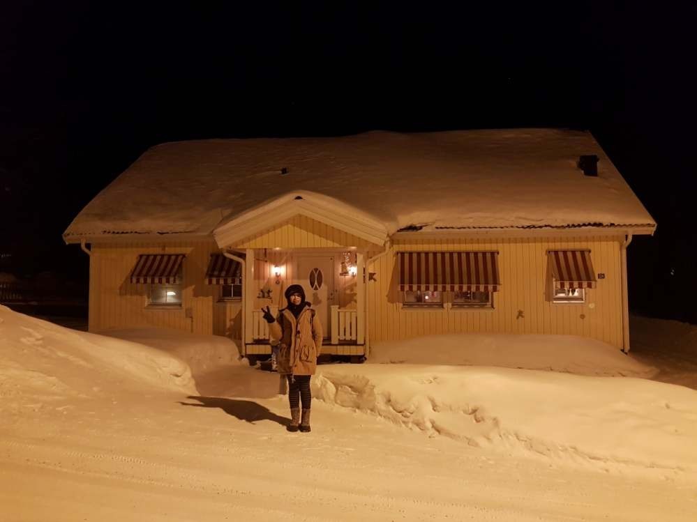 คล้ายๆบ้านขนมปังของสโนว์ไวท์มั้ยคะ จริงๆ ตอนนี้กำลังหลงทางค่ะ เพื่อนที่hostel ถามว่า เรามีแพลนจะไปเที่ยวยังไงที่ไหน เราก็บอกเค้าไปเหมือนเดิมว่า ไม่มีแพลน กะเดินเข้าป่า หาที่มืดๆดูแสงเหนือที่ kiruna ดูก่อน สรุปเดินกันจนเมื่อยค่ะ เพราะเค้าขอติดตามเรามาด้วยเลยได้รูปคนละรูปสองรูปตอนมืดๆนี่ล่ะ ส่วนแสงเหนือที่นี่เหรอคะ เสียใจมากก ไม่เจอเลยค่ะ เพราะเห็นว่าอ่อนพอควร แต่พอเรากลับมาที่สต๊อกโฮม หลังจากนั้น 2 วันเพื่อนเกาหลีคนนี้ของเราก็เห็นว่าถ่ายได้นะคะ ดีมากๆเลย