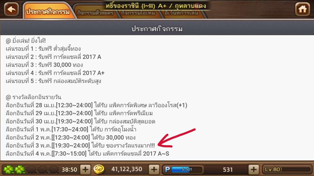 พรุ่งนี้เราคาดว่า น่าจะเป็นลูกเต๋า หรืออาจจะไม่มีคะ เพราะกิจกรรมเล่นเก็บรอบหมดวันที่ 4 แล้ววันศุกร์น่าจะเป็น Jackpot Festival เพราะกิจกรรมวันศุกร์ส่วนมากจะเป็นแต่ของดีๆไม่น่าเป็นจี้