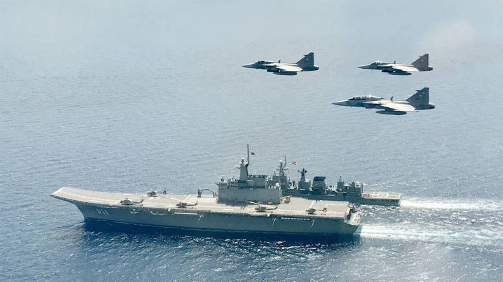ซึ่งในการฝึกครั้งนี้ ประกอบด้วย ฝึกการเติมน้ำมันระหว่างเรือรบกลางทะเล, ฝึกการจู่โจมทางทะเลของกองทัพเรือ, การใช้เครื่องบินขับไล่สนับสนุนการรบของกองทัพอากาศ และนำเรือหลวงต่างๆ ออกมาลาดตระเวนตามแผนการฝึก เป็นต้น ถือว่าเป็นการฝึกร่วมของเหล่าทัพ โดย กองทัพบก กองทัพอากาศ กองทัพเรือ และสำนักงานตำรวจแห่งชาติ ได้ส่งกำลังพลและอาวุธยุทโธปกรณ์เข้าร่วมฝึก เพื่อสร้างความสามัคคีและความเข้มแข็งในด้านความมั่นคง ที่จะรักษาและป้องกันอธิปไตยของชาติไทย / ภาพ วัชรชัย คล้ายพงษ์ NationPhoto