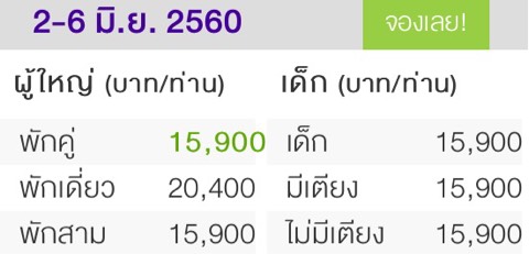 ช่วยอธิบายหน่อยครับ ตามรูปเลยครับ พักคู่ พักเดี่ยว(พักเดี่ยวแพงกว่าพักคู่อีก - -) พักสาม ราคาเด็ก มีเตียง ไม่มีเตียง แต่ล่ะอันมันหมายความว่ายังไง ในรูปนั้น บริษัททัวร์บอกว่า 5 วัน 3 คืน อาหาร 10 มื้อ