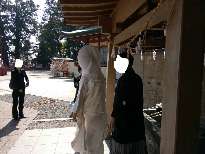 บ่าวสาวล้างมือก่อนเข้าศาลเจ้าค่ะ