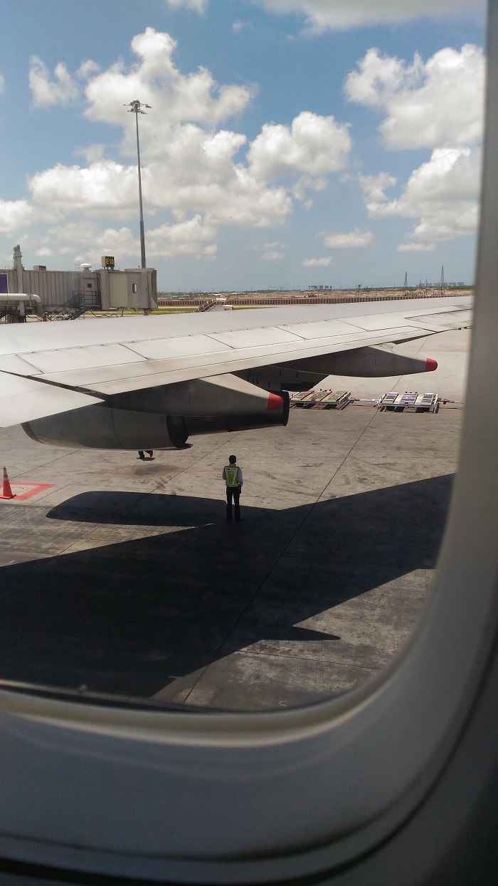 รอเครื่องออก ดีเลยืไป 30 นาที สภาพอากาศไม่ค่อยดีค่ะ