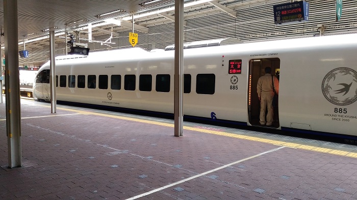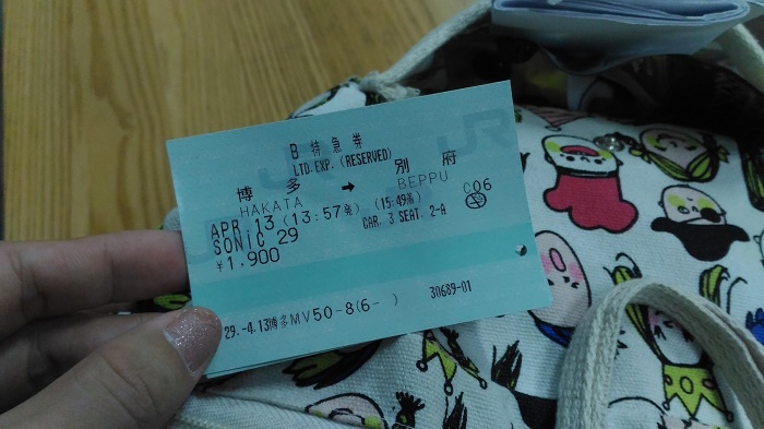 ขบวนแบบนี้ค่ะที่เราจะไป Beppu ชื่อว่า Sonic 29 ในตั๋วด้านบนจะระบุไว้ค่ะ ให้เรามองจากจอด้านบน ตรงชานชาลา
