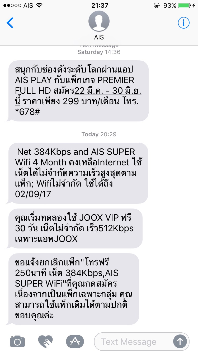 อยากจะสอบถามว่า ทำไม AIS ถึงยกเลิกโปร ที่ให้โทรฟรี 250 นาที ต่อเดือน เน็ต 384 kbps เป็นเวลา 4 เดือน ออก เพราะสาเหตุใด คนใช้เยอะ หรือเกิดจากการผิดพลาดของระบบ อยู่ดีๆพอกดสมัครได้ แล้วก็มายกเลิก ไม่กลัวลูกค้าเสียความรู้สึกหรือว่าไง หรือว่ากลัวบริษัทขาดทุน ยอดกำไรลด หรือว่าอะไร พูดตรงๆ เน็ต 384 kbps มันไม่ได้แรงเลย และไม่ได้ทำให้เน็ตรอบข้างช้าลงเลย แต่ไว้อาศัยส่ง Line อะไรเล็กน้อย แค่นั้น ตอนแรกก็ดีใจที่โปรกดได้ อยู่มาเมื่อสักพัก ยกเลิกโปร แถมตังก็โดนหักไปด้วย แบบนี้จะดูแลผู้บริโภคยังไง มาหลอกลวงกันชัดๆ อยากถาม จะดูแลลูกค้ายังไง ในเมื่อปล่อยออกมา แล้วมายกเลิกกันหน้าตาเฉยแบบนี้ ไม่งั้น 5 เลขหมายบ้านผม ก็คงต้องย้ายออกไป ถ้าหากใครเห็นด้วยก็ออกไปบ้านอื่นกันดีกว่า