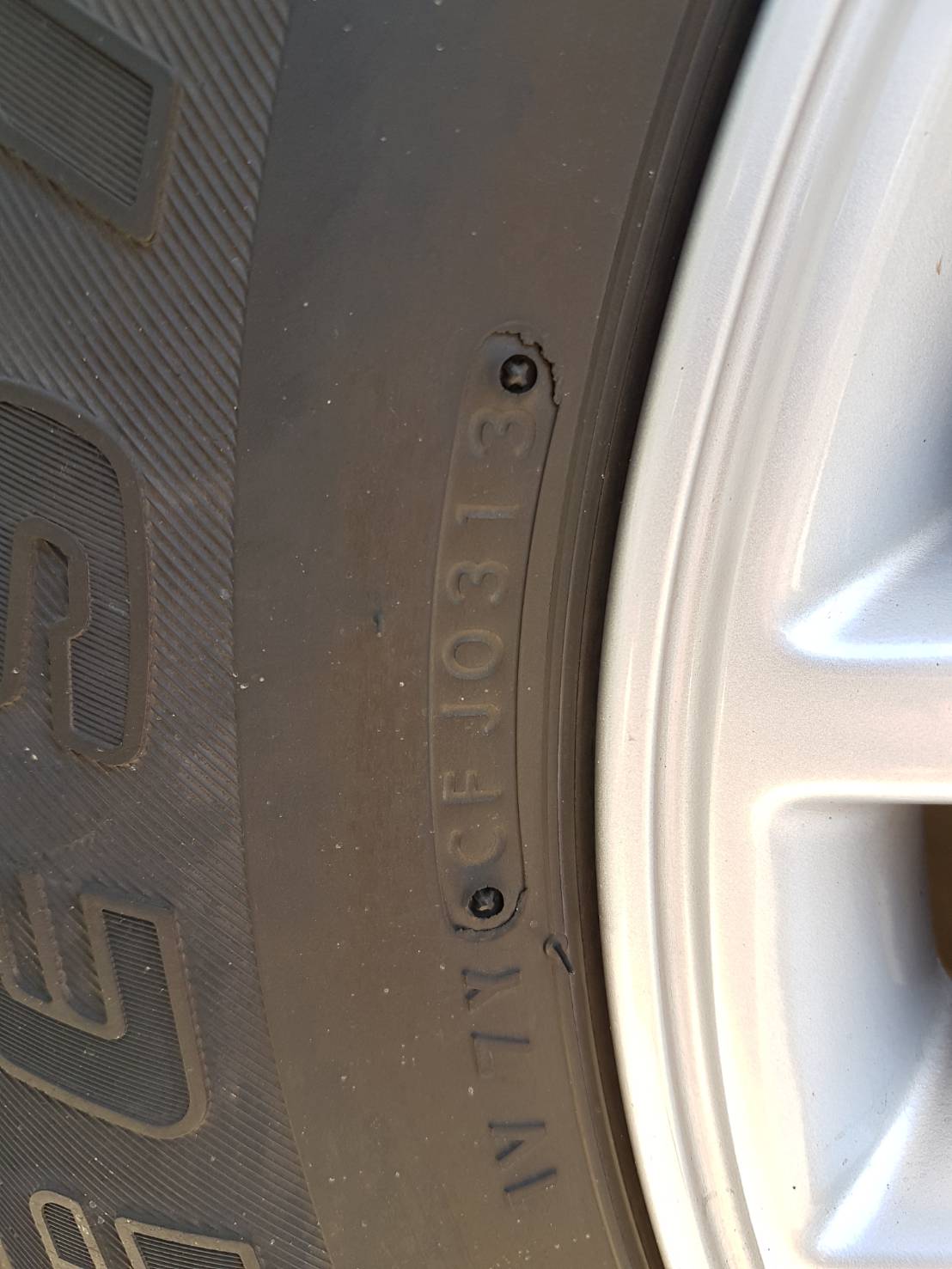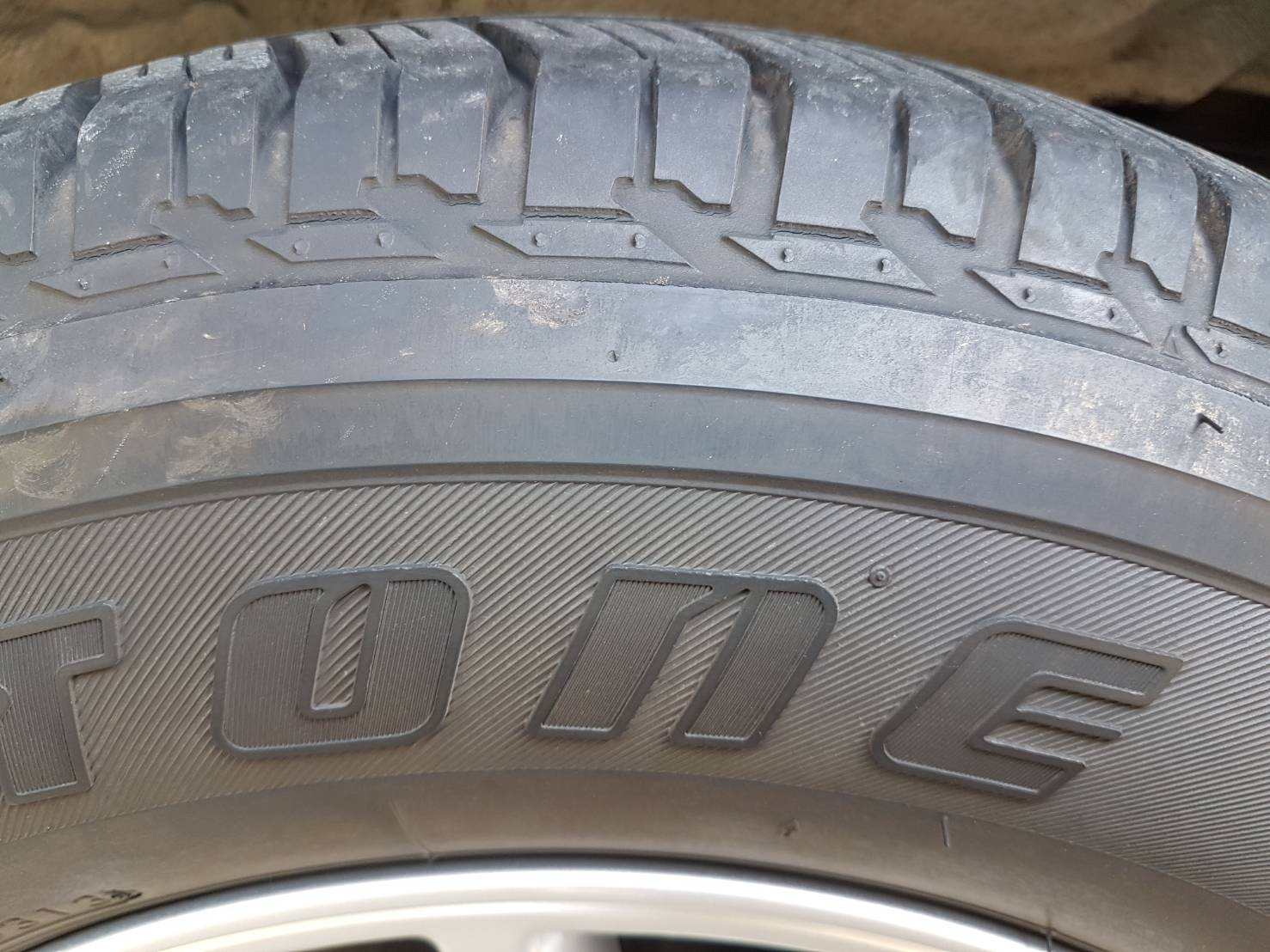 อายุยางประมาณ 4 ปี ดอกยังเหลือเยอะ แต่มีรอยปริ ตรงแก้มยาง รอบวง ตามรูป