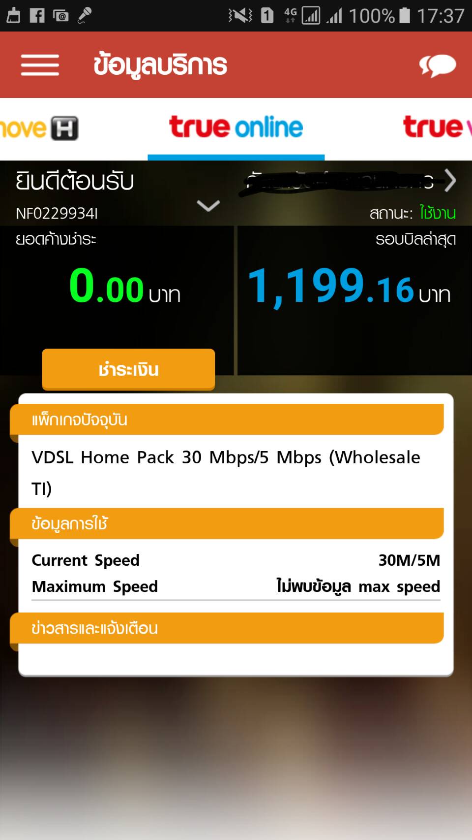 พอดีเราใช้บริการทรู อินเทอร์เน็ตบ้านรายเดือน เดือนละ 699 ใช้มาบริการจนจะครบหนึ่งปี มีปัญหานิดหน่อยเลยมียอดค้างชำระ อยู่สองเดือน และทรูก็ระงับการใช้งานไปเลยยยยยย