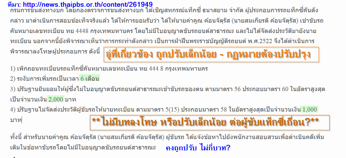 **ไม่มีบทลงโทษ หรือปรับเล็กน้อย ต่อผู้ขับแท็กซี่เถื่อน?**